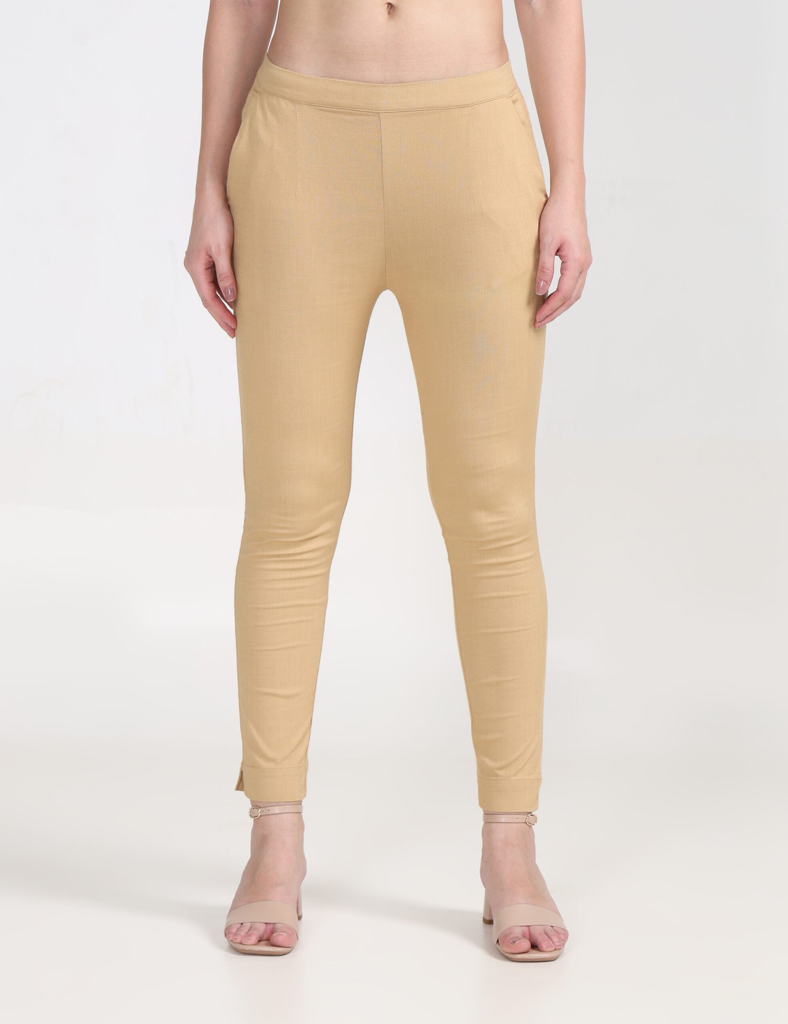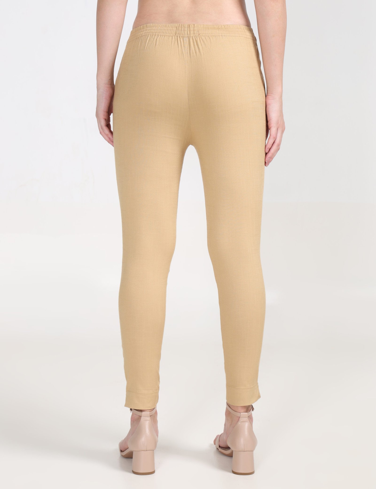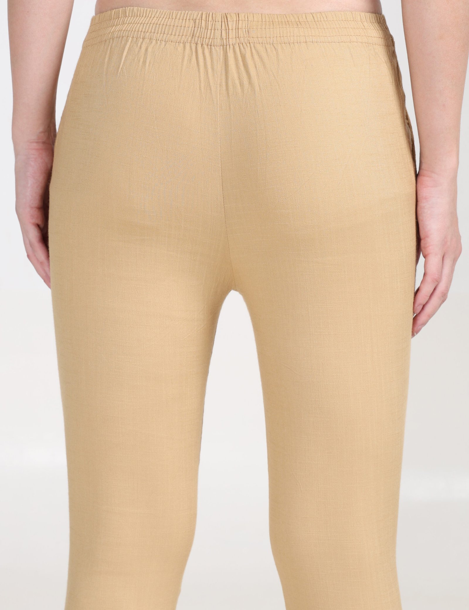 Cream solid ankle-length leggings has an elasticated waistband and slip-on closure.